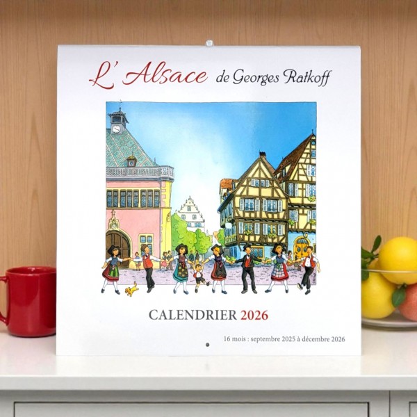 - Calendrier à suspendre entièrement illustré par des dessins de Georges Ratkoff sur le thème de l'Alsace.