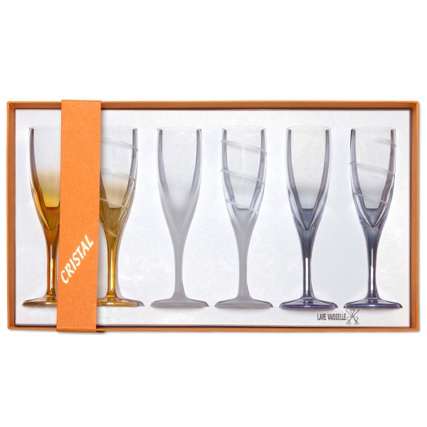 Magnifique coffret de 6 flûtes à champagne en cristal